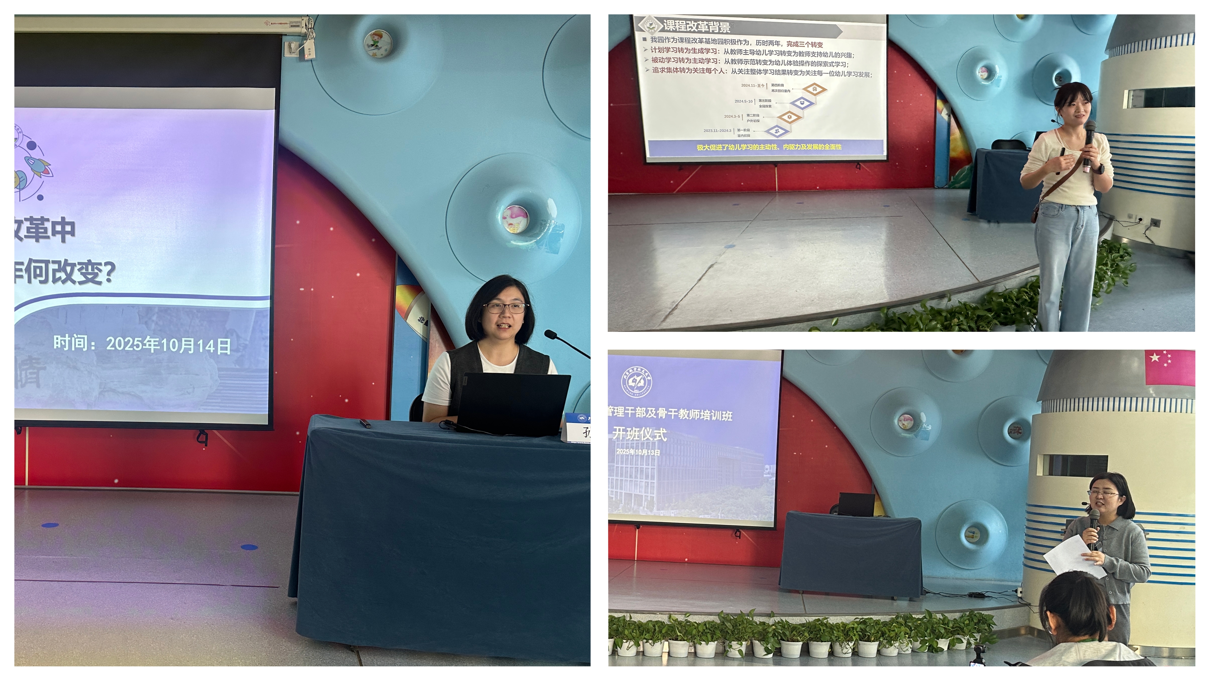 随后以园所三个实践案例,启发中阳县幼儿园管理者和骨干教师,重视自主游戏下教师的及时反思和经验梳理。荣获海淀区幼小衔接案例征集一等奖的梁玉娟老师用以“难忘的毕业典礼”案例,传递了主题活动下如何赋权幼儿的核心教育理念,以此阐释了开展主题活动同样能够赋权幼儿,倾听、走进儿童的理念。荣获北京市新教师风采展示一等奖的胡燕茹老师以“苹果蜂窝运沙包”的实践案例,证明儿童本身就是充满智慧、勇气与创造力的个体,他们无需被“塑造”,只需被“看见”。教育者要看见他们在游戏中展现的学习品质,看见他们解决问题的独特思路,看见每一个幼儿看似平凡的举动背后闪耀的成长光芒。荣获北京市幼儿园教师基本功展示活动一等奖的周彦清老师的大班游戏案例“登上高处玩游戏”也在现场进行了分享。案例中阐述的“适时退后”与“精准介入”的教育智慧,是园所教育过程充分倾听幼儿、赋权教师的生动缩影。其“慢教育”理念与“小我向大我”的转变,彰显了新时代幼教工作者从“教书”到“育人”的价值升华。