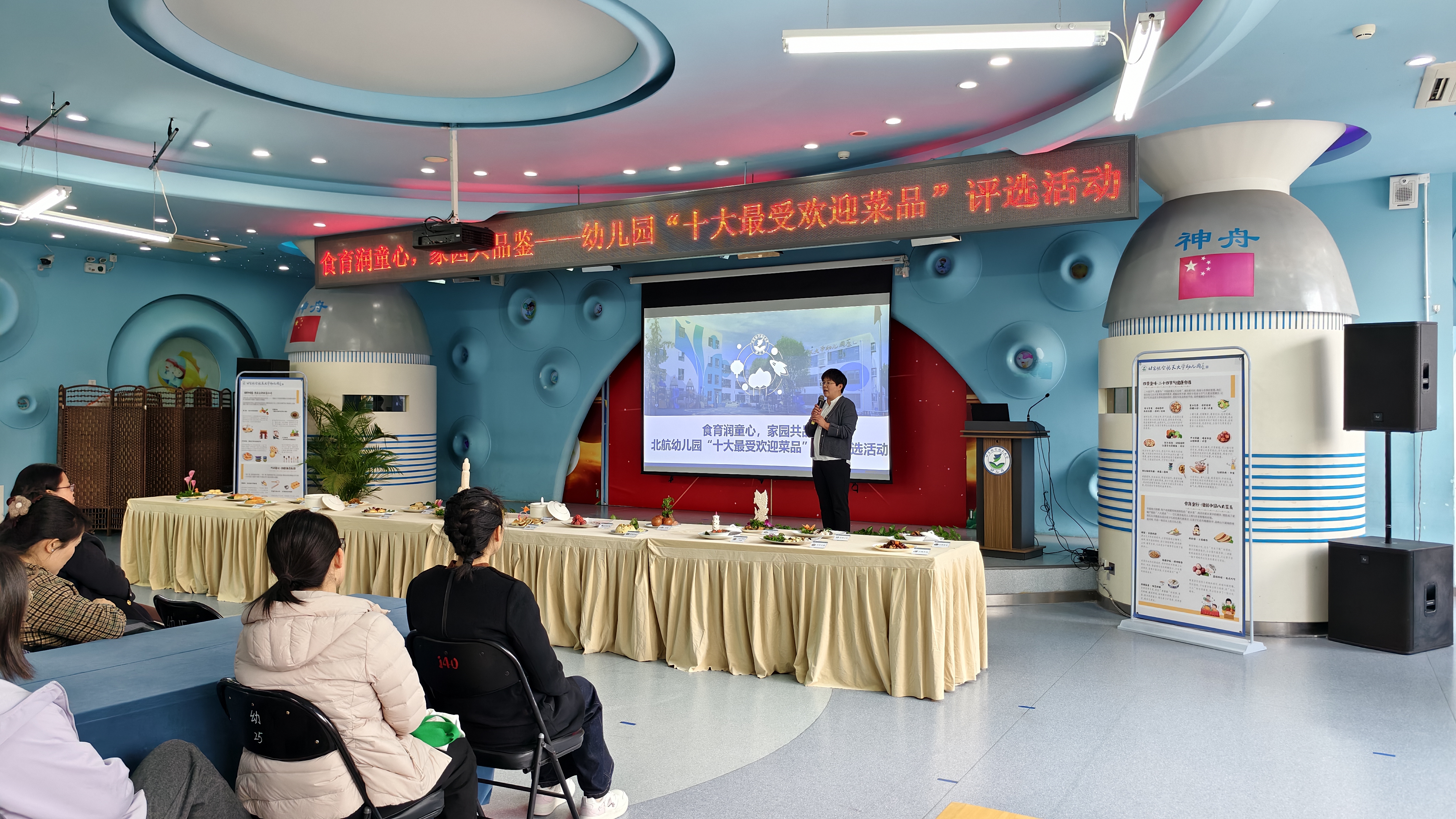 最后,北航实验学校党委书记马树微宣读了“幼儿园十大最受欢迎菜品”,它们是山楂酥、荔枝虾球、小吊梨汤、烤梨、奶酪饼、红薯芝士蛋挞、栗子糕、小起酥、山楂排骨、肉夹馍。现场孩子们的欢呼声此次彼伏,将本次活动推向了高潮。