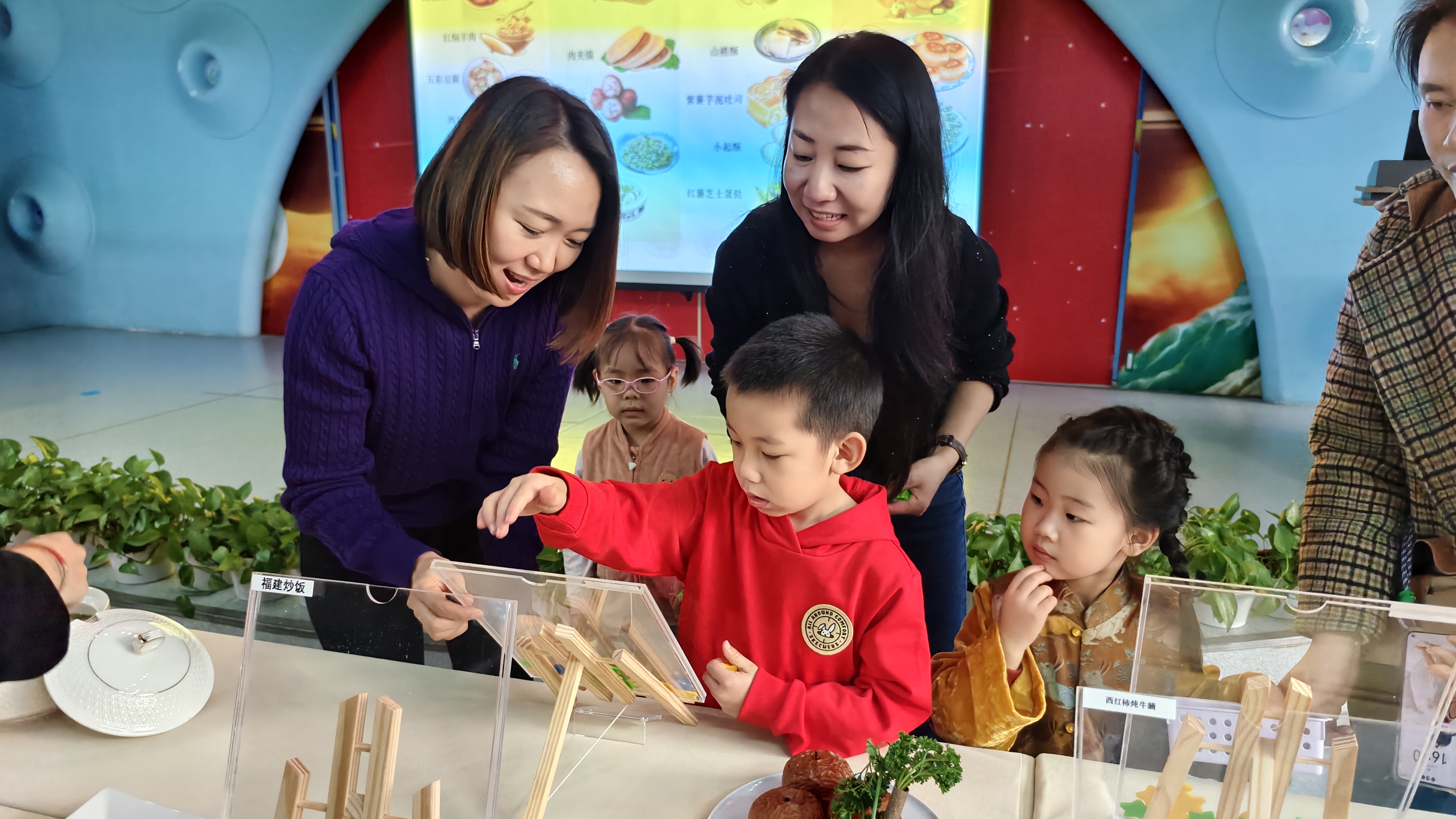 五彩豆腐鲜嫩欲滴,红焖羊肉暖身暖心,在幼儿园多功能厅里,承载着大厨们的厨技与爱意的菜品琳琅满目……11月15日,北京航空航天大学幼儿园举行“食育润童心,家园共品鉴——十大最受欢迎菜品”评选活动。幼儿园食堂团队经过前期调研精选了二十道孩子们餐桌上的美食作为品鉴菜品,并邀请了涵盖各个年龄部的幼儿园膳食委员会成员、班级家长委员代表等40余组亲子家庭、幼儿园教职工代表参与品鉴和评选活动,此次活动同时也是一次园所开放和亲子活动。